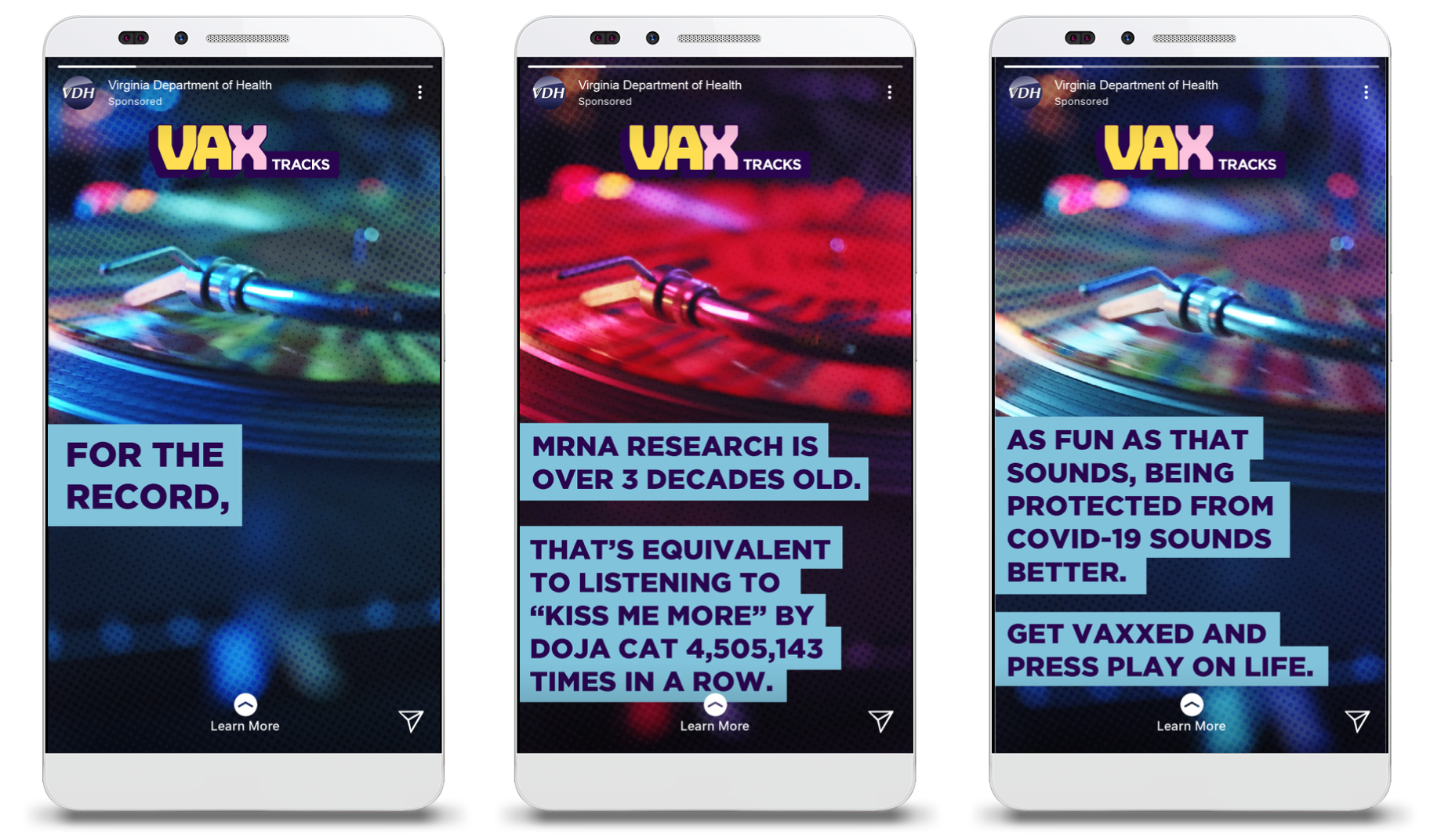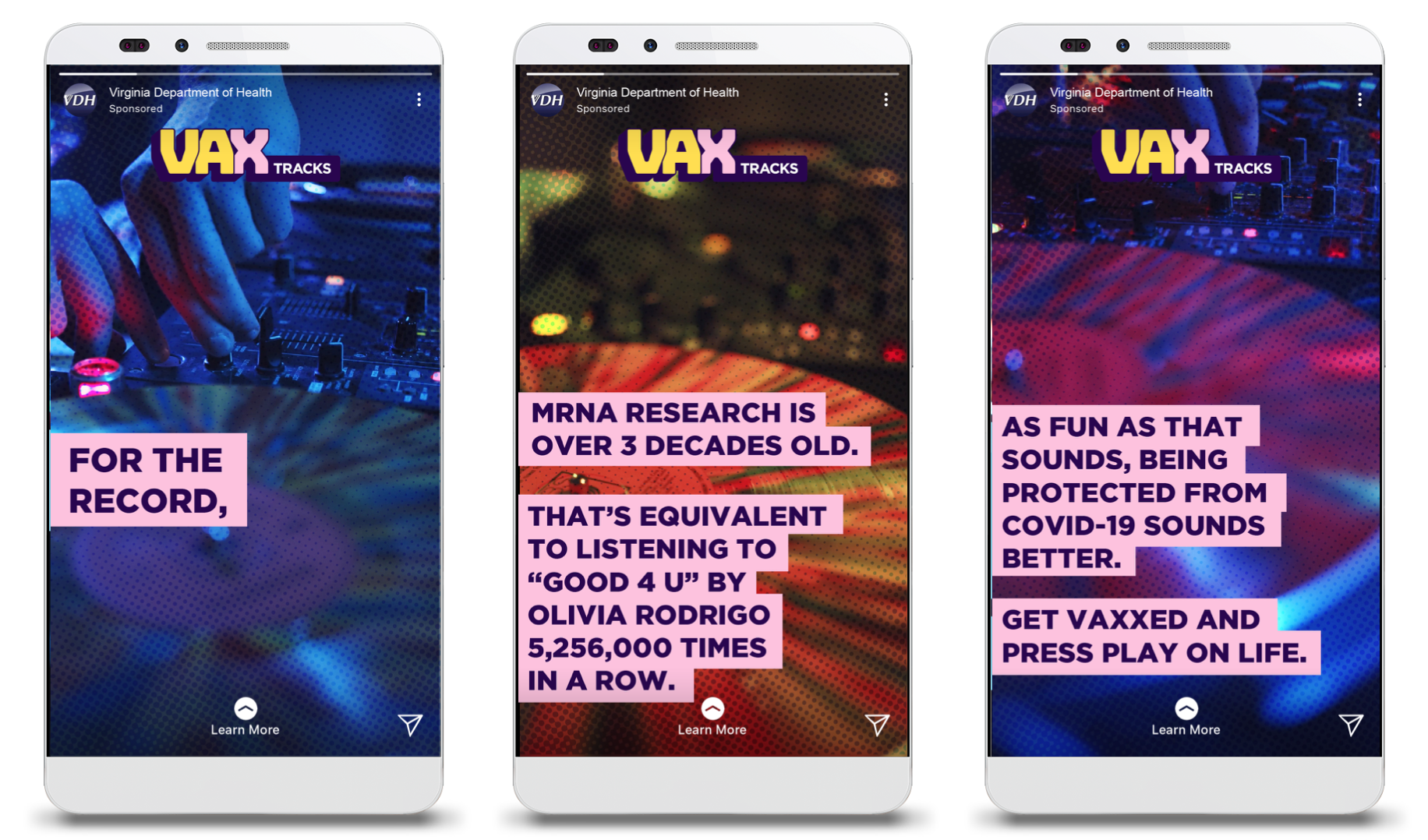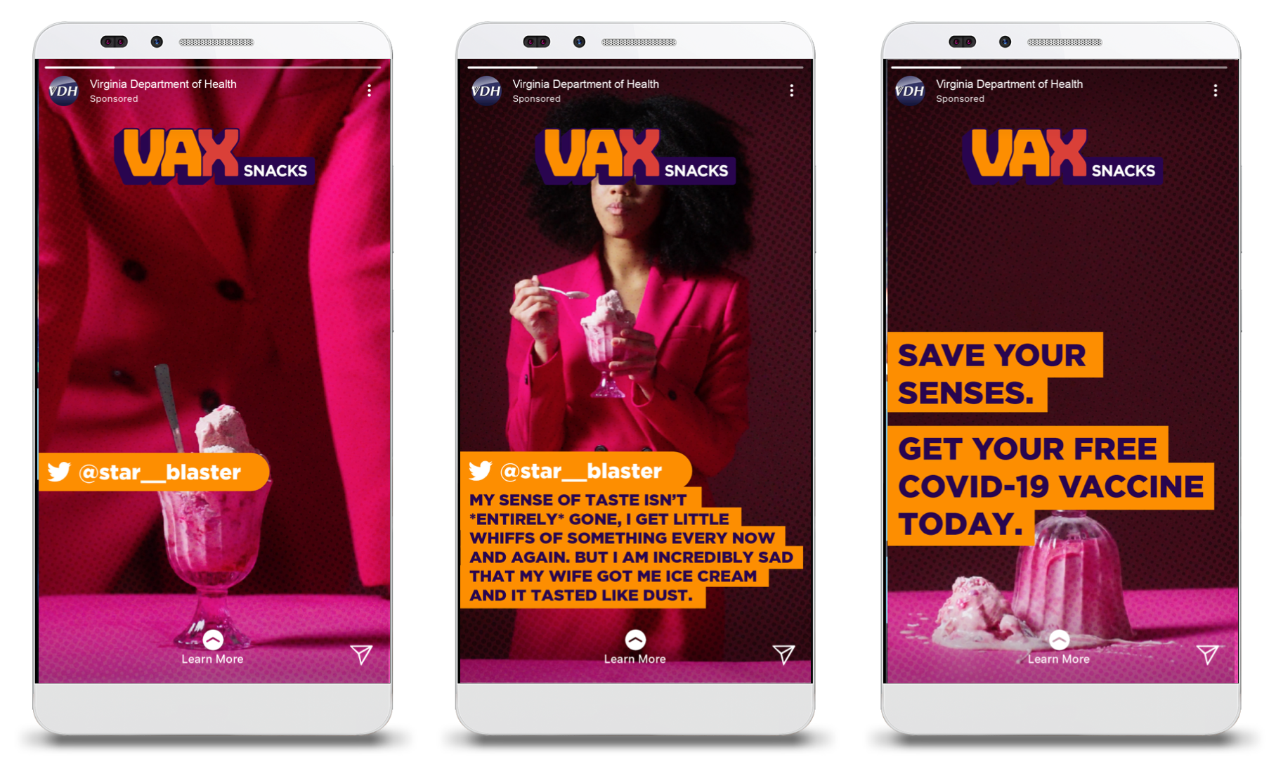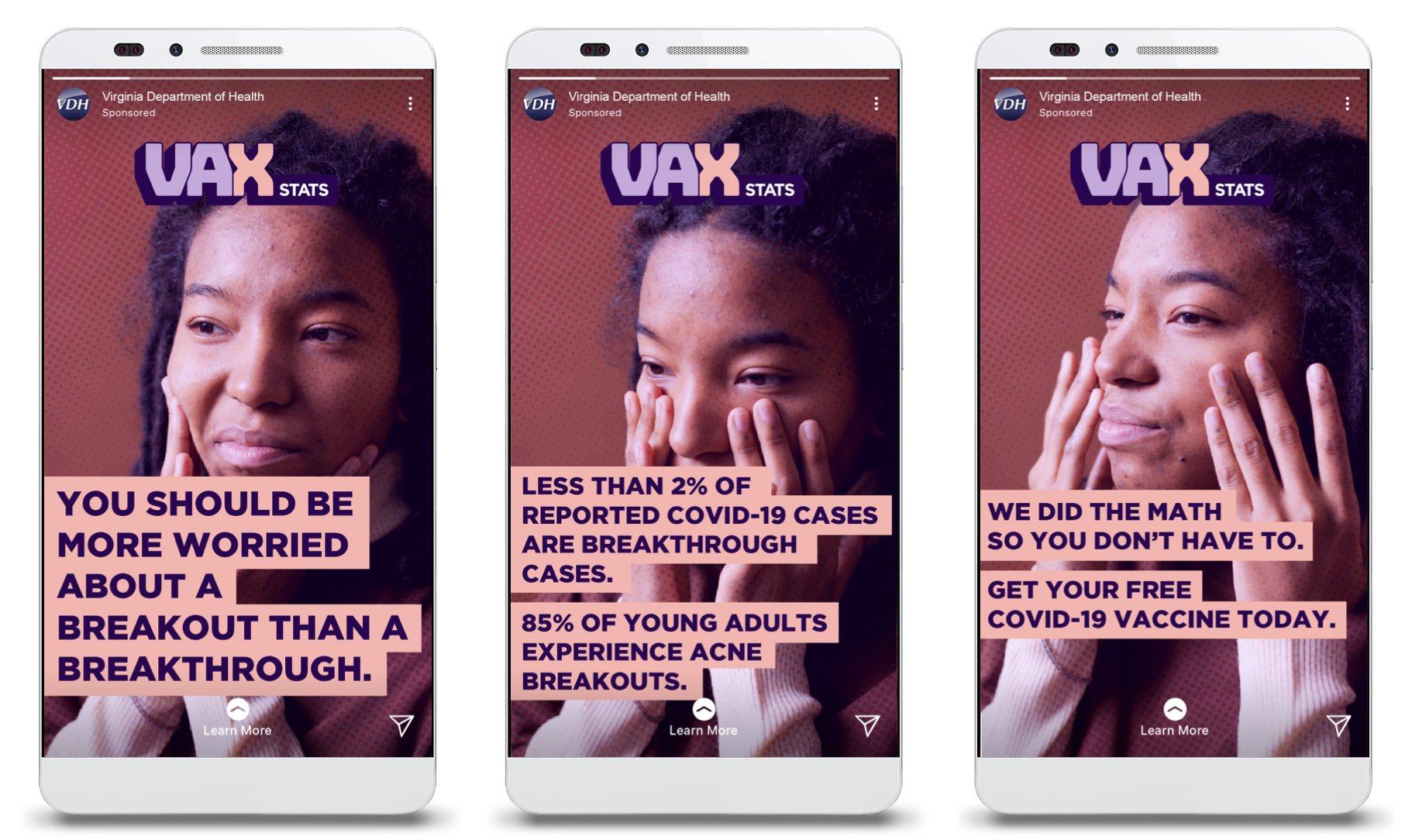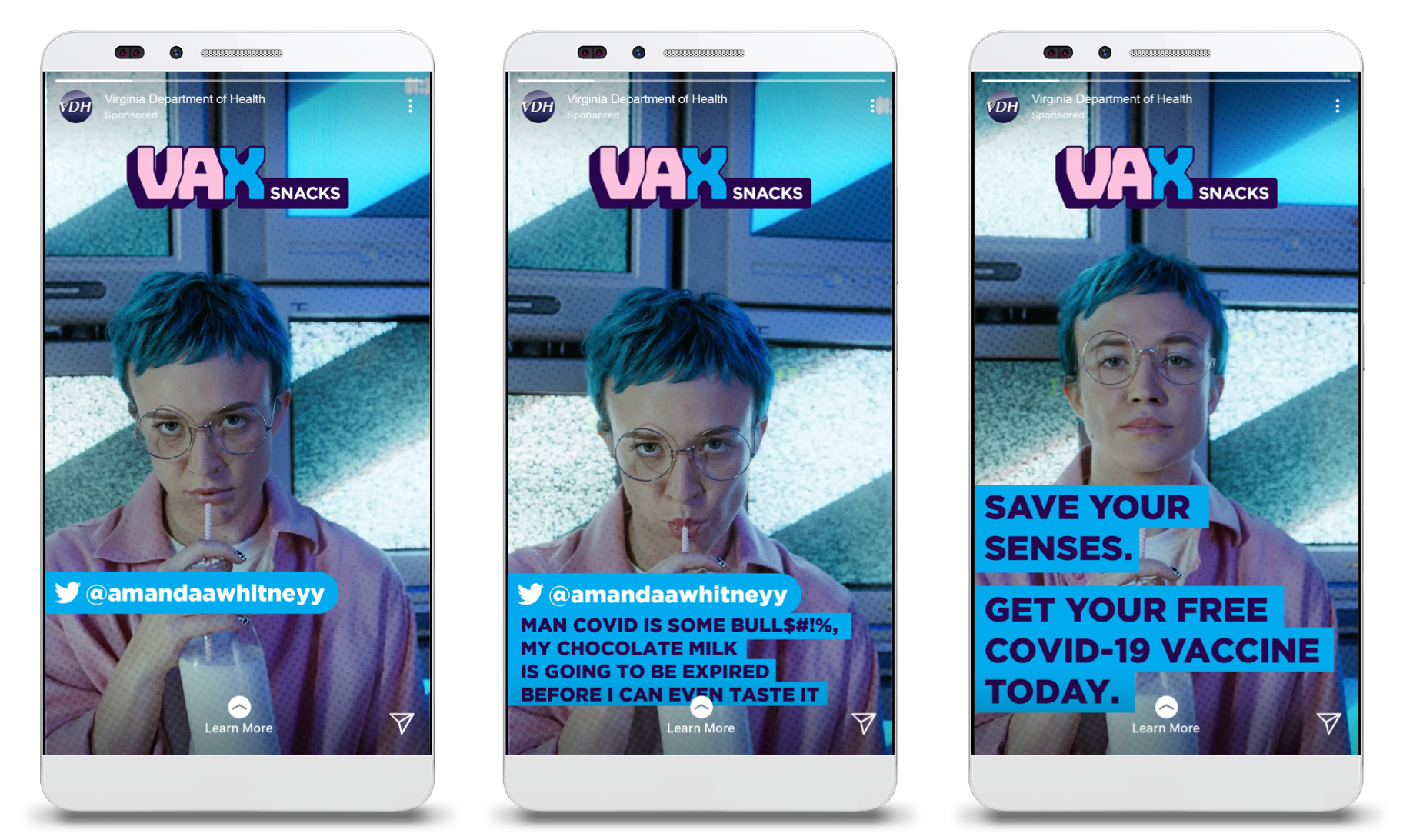 At the height of the COVID-19 Pandemic, VDH challenged us to create a vaccine awareness campaign aimed towards young adults. We responded with VAX; a social campaign with an edgy, energized look and feel. With VAX, we wanted to dispel myths about COVID and the vaccine by presenting concrete facts, in a way that felt accessible to Gen-Z, without preaching or scolding.